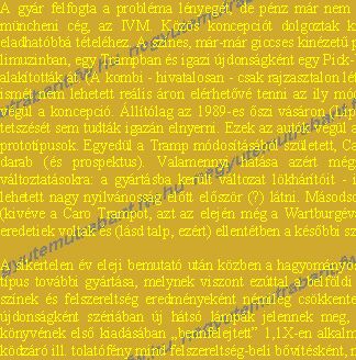 négyütemű Trabant - Trabant 1.1/1,1 - limuzin - kombi - Tramp - Polo motoros Trabant - 1.1/1,1 típustörténet - prototípus - nullszéria - bemutató - BM820 - 1.05/1,05 kcm - Wartburg 1.3/1,3 - 1.1E/Entwicklung - 1,1S/Special - IVM-Trabant - Caro-Up - Caro Tramp - 601 - VW - Lipcsei Vásár